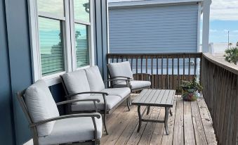 Rear dining porch and front porch, both with beach views and cool breezes. Open floor plan with large living room, dining room, and kitchen with island, tastefully furnished and decorated. Three large bedrooms and two baths, including master suite with king bed, double vanity with frameless glass shower and soaker tub, separate guest bath and bedrooms with queen and twin beds, and large closets in each. Wifi and large smart TVs in living room and all bedrooms.About pets:No pets allowed.About checkOut:Check out before 11:00 AM.About children:Children allowed: ages 0-17.About checkIn:Check in after 4:00 PM.About smoking:Smoking is not permitted.About minBookingAge:Minimum age to rent: 25.About events:No events allowed.