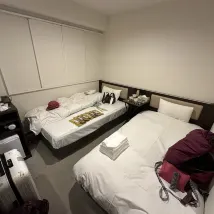 The room is relatively small, similar to other Japanese hotels, and fairly clean. The hotel sells vegetables and flowers downstairs, which are very fresh and relatively cheap. There is a large supermarket not far away. It is a bit far from the subway station, but too far from the city center.