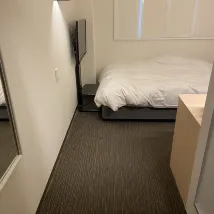 The bathroom is good, but the shower room is too small for an Asian like me to stretch out. I have to adjust the temperature carefully every time I take a shower. There is hot water on one side and cold water on the other. It is easy to get burned. There should be a main valve in front so that I don't have to adjust the temperature every time.