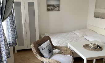 Alles da was man braucht. Allerdings war es sehr hellhörig, sowohl nebenan als auch von oben. Fahrrad konnte in einem kleinen Häuschen auf dem Grundstück abgestellt werden. Parken mit PKW recht eng, wer zuerst kommt malt zuerst, aber auf dem Parkplatz zum Naturstrand kein Problem, unweit der Unterkunft.