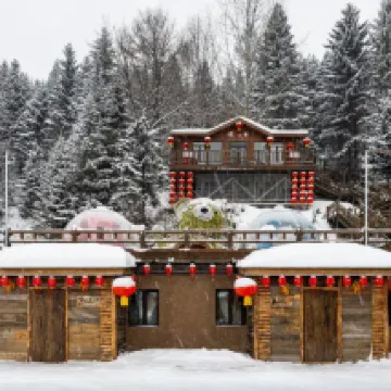 Absolutely amazing guesthouse! It's right on Xueyun Street, so the location is perfect. Step out of your room, and you're greeted with a beautiful snowy view of the mushroom-shaped houses. The guesthouse even has its own boardwalk in the courtyard, from which you can enjoy a panoramic view of Snow Town. The host was incredibly welcoming and gave great recommendations for delicious restaurants. Plus, we got a discount on sled rentals for the kids! If you're heading to Snow Town, you can't miss this place!