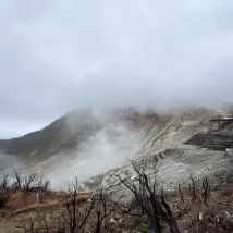 The hotel has a outdoor onsen and a well-equipped bath. Dinner was fair. Just a five minute drive up to Owakudani, very convenient.