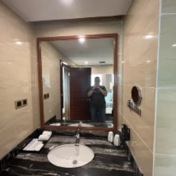 The room is quite big and has a bathtub. It is very close to the international cruise terminal, and the taxi is 31,000 VND. Special thanks to the girls at the front desk. Although we are of different nationalities and our English is not very good, I booked a minibus from Halong to Hanoi in advance. Because I didn't have a Vietnamese number, I couldn't contact them. The front desk was very enthusiastic to help me contact the bus company and the driver to ensure that I got on the bus safely. Although the double-decker bus experience for the one-day tour in Halong was not good, the hotel is really good. I hope they can recover from Typhoon Makar soon.