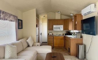 This 1-bedroom, 1-bath mobile home is perfect for solo travelers, couples, or small groups. With a cozy bedroom, a sofa bed in the living room, and space to sleep up to 3 guests, it offers an affordable stay with all the essentials.
