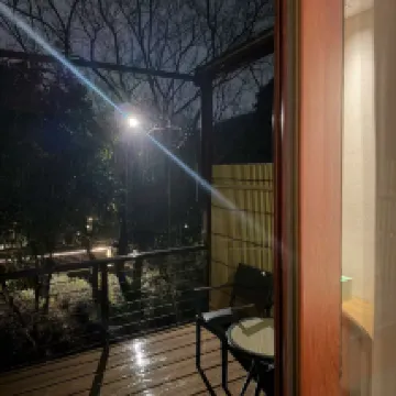 Environment: Lots of greenery, and we stayed in a wooden cabin. There were no issues with soundproofing; even with rain at night, we couldn't hear a thing once the patio door was closed.