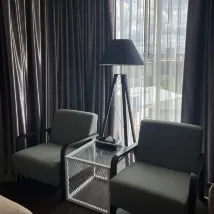 The hotel service was excellent. There's free parking with plenty of spaces available. The rooms are well-equipped. However, the room design isn't particularly child-friendly, as there are many hard surfaces and objects that require careful attention to safety if you're traveling with kids. The mattress is firm, and both soft and firm pillows are provided.