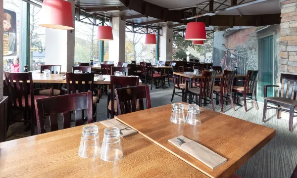 Hotel is located next to the train station and has plenty of restaurants to choose from.