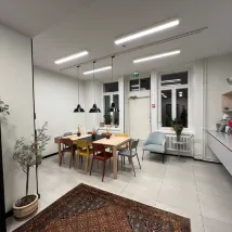 Everything is clean and tidy, kitchen is huge and there is enough coffee and tea for everyone. Favourite spot is the gym room, there’s even a rack and heavy lifting is possible ;))