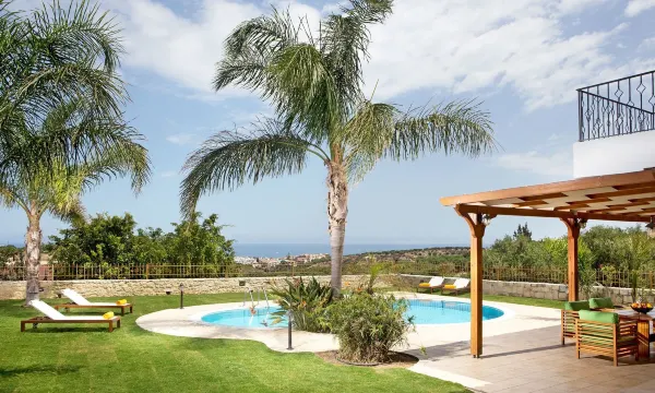 We have been visiting these villas for 5yrs now and have never been disappointed. There is everything you need here including a meal on arrival and enough supplies to last for ages . The location is ideal as it is within walking distance of 3 villages with many tavernas, shops etc. The mountains are behind you and you can see the sea in the distance from the garden. Gaby who owns the villas, is one of the lovliest people that I have met and nothing is too much trouble for her. The villas are spotlessly clean, the gardens are beautiful and totally private. You also get picked up from the airport and taken back on the day of your departure and you can stay in the villa until you are due to leave, the airport is less than 30mins away. We love these villas and would not stay anywhere else in Crete.