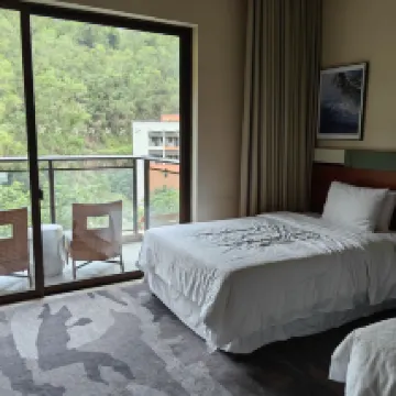The hotel is located at the foot of Dayan Mountain in Heshan City, and there is a quiet path leading to the mountain gate. It can be said to be a scenic hotel. The hotel has a magnificent appearance and a modern design. The vista is beautiful and the mountain scenery is also vibrant. The hotel rooms are spacious, well-equipped, and charging is very convenient. The waiters are enthusiastic and bring a good experience. There are many dishes for the buffet dinner. It is very cost-effective during holidays.