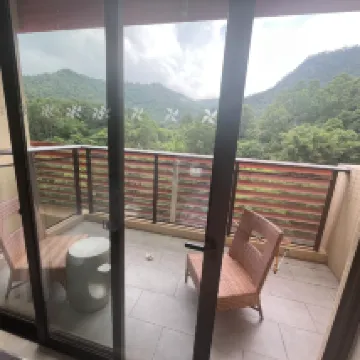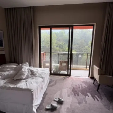 This is one of the few high-star hotels in Heshan, located very close to the highway, making it very convenient for driving. I originally booked a mountain view room, but upon check-in, Candy from the front desk upgraded me to a suite. The room was spacious and included complimentary breakfast for two. It was a truly wonderful experience. The hotel is perfect for families, and right next door is Dayanshan Forest Park, offering beautiful air. On weekends, there's a children's outdoor pool bubble party and other family activities! If you're lucky, you can even see fireworks across the street at night. It's the perfect place for a relaxing weekend getaway!