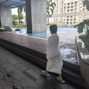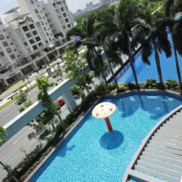 It's a 15-minute walk to the exhibition, and it's very convenient for bringing elderly people and children. It has two bedrooms, a small balcony for cooking and washing clothes, and a free gym and swimming pool on the second floor (with children's and adult areas). There's a supermarket downstairs, a cafe across the street, and the Korean area is on the left. There are many late-night snacks to stroll around in the evening. I'm satisfied with the good value for money and will stay here again next time.