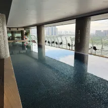 For the price we paid, the room standard was below expectation. 1706 had a weird smell upon check in. House Keeping staff put a lighted pineapple which rid the odour for only a day. We stayed for 3 nights. Room was dusty and bin wasn’t cleared. Carpet and bathroom was too dark with black decor. The swimming pool comes with steam room and sauna. We liked the lemongrass scent in the sauna.