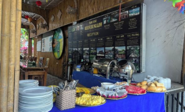 Семейный отель с отличным расположением на противоположной стороне от станции лодок. Уютные бунгало, есть всё необходимое для отдыха. В номере душ, туалет, умывальник. Есть фен и чайник, 2 бутылочки воды каждый день. Удобные матрасы. Кондиционер работает как на холод, так и на обогрев, мы путешествуем в январе, в номере было тепло. Хороший напор горячей воды, но бойлер небольшой, иногда нужно подождать пока вода нагреется. У бойлера и кондиционира отдельные выключатели. Большое окно, прекрасный вид на внутренний сад, у каждого бунгало есть столик и стул перед входом в номер и маленькая зона отдыха. Завтраки скромный, но вполне приличный, предоставляется выбор еды и напитков. Есть своя большая зона с видом на реку. У отеля очень красивое расположение прямо у отвесной скалы, очень много зелени и цветов. 5 минут идти до станции лодок и центра Там кок, там полно магазинчиков, кафе, есть банкомат и обменники. Хозяева отеля большая дружная семья, готовы во всём помочь. Мы купили у них билеты на слипбас, насдовезли до автобуса, помогли занять хорошие места в автобусе. При заезде в отель нас заселили раньше времени, при выезде из отеля багаж до вечера мы оставляли на ресепшене отеля. Мы забыли вещь в номере отеля, хозяйка передала её через автобус на следующий день.