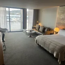 1️⃣ I stayed in two hotels during my trip to Tasmania: The Tasman and then Macq 01. Comparing them, Macq 01 was truly terrible... They even charged for mineral water, which cost 4 bucks per bottle. Cleanliness was also mediocre. If you stay consecutive nights, the bathrooms are barely cleaned.