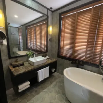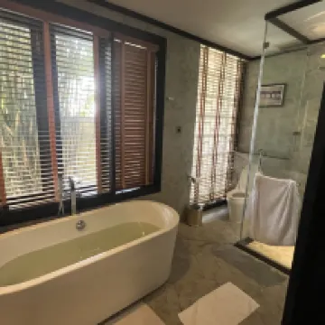 The resort is really beautiful in terms of the nature.The staff was really kind and welcoming.Although when booking be clear on the room as I booked a villa facing the river view but was given the room way smaller only with a bath tub when my booking shows shower aswell as that room is bigger and more spacious.I contacted the reception and luckily we was moved to the new room. The restaurant has nice food but they should add more vegetarian options to their menu. We tried booking the spa however they could not accommodate us yet they told us that just to call them 1 hour before. The breakfast needs to improve abit on the selection ,as every day it the same thing and no change sometimes the pastries was not too fresh aswell. More options to beverages aswell to be noted.The pool bar service is very slow and there no one there to attend to you when you require service takes very long to recieve your drinks. Room service should be 24hours in case of your flight been late and you require something to eat and drink.