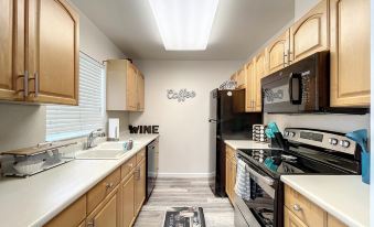 Enjoyed staying. Was cozy and kitchen was well stocked. A few ceiling fans could improve air circulation. Really enjoyed the pool and how close to the beach we were!