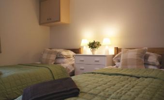 3 bedrooms: 2 single beds 1 queen bed and 1 double bed