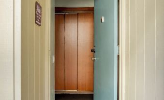 Sliding glass door gets you outside to the pool. Clean room, comfortable bed. Great stay.
