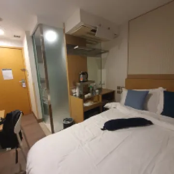 Perfect for solo travelers. The room isn't huge, but the facilities are well-maintained and it's clean and tidy. Disposable toiletries are fully stocked, and the disposable towels are a great touch. The sink is a bit small though, so if you want to wash your hair, you'll pretty much have to take a shower. Its biggest advantage is the convenient location, just a two-minute walk from Ho Man Tin MTR station. Excellent value for money, and secure with key card access. Five-star rating!