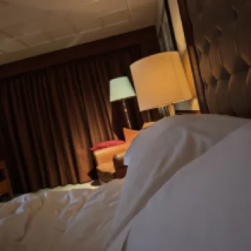 2. The facilities are extremely outdated. There was an unpleasant smell as soon as I stepped out of the elevator on my floor. The electric kettle didn't have a keep-warm function, and the hairdryer was practically useless – couldn't dry my hair at all. The toilet was old and worn, and the trash can required you to manually lift the lid instead of being sensor-activated. The lighting was dim, with no smart sensors whatsoever. After turning off all the lights at night, there were still bright spots everywhere. The gap under the door was huge, allowing light from the corridor to shine in, which woke me up in the middle of the night and was quite startling. The ceiling was incredibly low, and combined with the dim lighting, it made me feel incredibly oppressed and dizzy. The air conditioning wasn't a fresh air system, making the room very dry. The bedding was old and worn, with multiple holes!