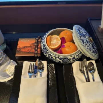 4. Room service was mediocre. I stayed for four nights and had to call for water every day. Couldn't they just put a few extra bottles in the room? The welcome fruit was a dried-out orange that looked unappetizing. The diffuser was only provided on the first day, and the Pu'er tea wasn't refilled daily.