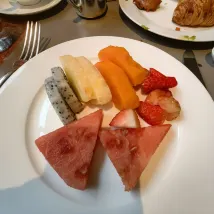The welcome towel and drink were perfect for unwinding. Though the chocolate amenity was replaced by an orange this time, it was refreshing. The fruit knife, probably meant for butter, was too dull to cut anything, so I just peeled the orange by hand – it was actually quite amusing. The breakfast buffet was excellent, with authentic dishes and attentive service. The only slight issue was that the seating staff were a bit busy, so we had to wait a little. Also, the billing process was a bit odd; sometimes they asked for a signature, sometimes not, but I just let it be.
