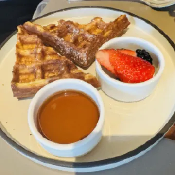 The breakfast was just okay; the waffles were decent.