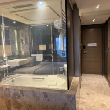 Overall, it was a great stay. The location is super convenient, making it easy to get to Victoria Harbour and other attractions. Right next door is the Grand Century Place mall, so you have plenty of dining options. The hotel's environment and cleanliness were also good. We chose a room with a 1.5-meter bed, which is quite rare for Hong Kong. Essential toiletries like toothbrushes, shampoo, and body wash were all provided, so there was no need to bring our own. One of the best things about Hong Kong is that you don't need to buy bottled water; we didn't buy any water during our four-day trip. Just carry a reusable water bottle, and you can refill it almost anywhere, which is very convenient and eco-friendly – definitely something to learn from. The only minor issue we had was on the first night; we were given a room with a connecting door, and the soundproofing was terrible. The family next door had three noisy kids who kept us up until late, so we didn't get much sleep. However, the hotel was very accommodating and moved us to a quieter room the next day.