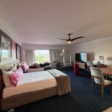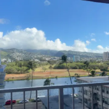 This was my second time staying at the Ilima Hotel, following last year. It was comfortable last year, too, and with prices constantly rising in Hawaii, this room with a large refrigerator was extremely convenient. My husband has leg and back problems, so we needed a room that was not too far from the city center and easily accessible. So, I'm glad we chose the Ilima Hotel. Perhaps because we downgraded the grade from last year, 1) it felt cramped, even though it was advertised as the same size. 2) During our five-night stay, the hot water seemed to run out while my husband was taking a bath, both in the middle of the night and around 10:30 PM. 3) The water pressure was weak, and the shower water flow was extremely weak, completely different from the faucet, but the temperature was still quite hot. 4) The toilet doorknob was a little wobbly. 5) The room entrance door was unusually heavy. 6) The ceiling fan moved in the opposite direction to the switch; turning it down made it stronger, and turning it up made it weaker. 7) I forgot to ask about Wi-Fi. Was it available? Although we couldn't see the ocean, we were on the canal side and could see the Ko'olau, whose appearance changes depending on the weather, and I really love the view from here. While it doesn't feel new, I like the atmosphere of this hotel, which is calm and quiet, and the rooms are spacious. I would recommend this hotel to those visiting Hawaii for the second or third time rather than first-timers. The hotel has a classic Hawaiian atmosphere, and my favorite Hawaiian music plays in the background all the time. If I go to Hawaii again next year, I will probably book here again.