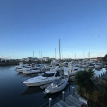On arrival there was no reception staff we waited for 25 minutes to be served. Which we had to go to the bar and ask for someone to come help, then try an ring the hotel to get help no answer. There was 4 other guests also waiting. The hotel is very run down and needs a lot of repairs, shower head was corroded, no handle in shower to pull door shut, so water was going everywhere. The patio ceiling was falling down. One spoon, one cup, one glass, one sachet of coffee, no tea supplied, no plug for bath. Bed was comfy though. Gym equ was broken, sauna not working. Went down for dinner they had a seafood buffet $50 which they couldn't keep up with, wasn't enough being put out, everyone standing around waiting. So we ordered 3 seafood baskets and 1 nachos. To be told 30 minutes later there wasn't enough to put one together. So asked to get calamari no none left, so ended up all getting nachos. Which we wanted a refund in price difference, which they had to be returned in cash, but had no cash in register to give us, had to go find some. We waited then an extra hour 15 minutes for nachos, which didn't look anything like the photo an i could have made better at home. Was very disappointing. Went for a walk along the marina and the boards really need fixing, quite dangerous with nails sticking up an boards rotting. The one lady was doing reception, cleaning and in the kitchen, very understaffed. So wouldn't be staying there again.