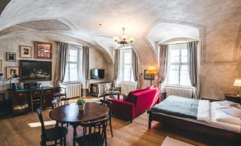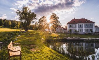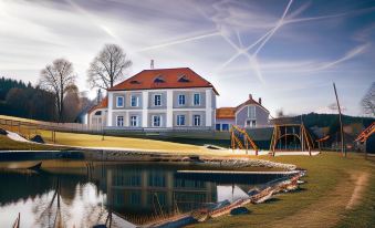 A comfortable place with a touch of history. Beautiful garden with a playground, charming wellness area in wooden cottages, a small farm, and a pond with a rowing boat. The breakfast was delicious, the surroundings were stunning, and the people were very friendly. I had a wonderful time here with my family. The only thing I was missing were more places where to eat during the day and evening.