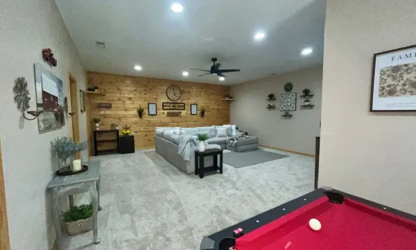 Relax with family & friends at this peaceful & secluded cabin nestled on the outskirts of Murphy, NC in the Blue Ridge mountains, under 15 mi to Blue Ridge, GA and Ocoee, TN. This charming retreat offers endless hours of relaxation & entertainment, and it is conveniently located near popular local attractions, shopping, and lots of great places to eat! Guests will love the FULL WRAP AROUND PORCH with porch swing, rockers, and 2 dining areas to take in the sites & sounds of nature. There is a propane heater and a BlackStone on the deck so guests can whip up a quick and delicious breakfast or dinner. Be sure to stop by the fully stocked coffee bar for a cup of coffee or cocoa before heading out to enjoy an evening by the fire pit or in front of the fireplace. Families will enjoy the full sized pool table that converts to a ping pong table or large table for playing cards and games, and the 86’ big screen TV. There is a fully stocked kitchen with double oven, perfect for those who love to cook and bake. You and your family will find it easy to make yourselves right at home at our Certainly Heaven Retreat!About pets:Pets allowed: dogs (limit 2 total).About checkOut:Check out before 10:00 AM.About children:Children allowed: ages 0-17.About checkIn:Check in after 4:00 PM.About smoking:Smoking is not permitted.About minBookingAge:Minimum age to rent: 23.About events:No events allowed.