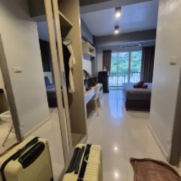 The front desk staff were very friendly and cheerful, always willing to answer any questions. There's also a swimming pool. As for the room, it was a bit dated but kept clean and tidy. The air conditioning unit was incredibly loud; at first, I actually thought a helicopter was flying by, but it turned out to be the AC. The mattress was so shaky that any movement would disturb the person sleeping next to you. The room rate was under 400 baht per night, and overall, it offered good value for money.