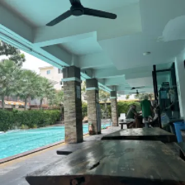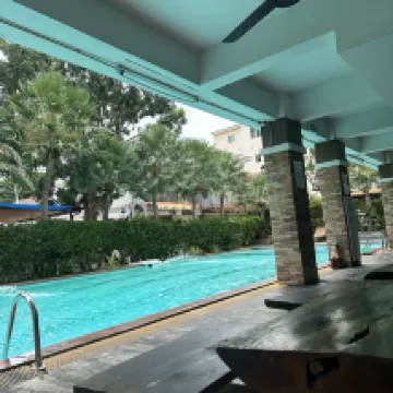 Is a condo residence and some apartments are converted into “hotel rooms” with hot shower, air condition and clean room. Down on the ground floor has a 7-11 vending machine with a microwave provided. A mere one minute walk to a small clean home cooked restaurant serving western style cuisines. In the lobby has a coffee/tea vending machine. There is gym, outdoor swimming pool and indoor restaurant plus a massage center. A good quiet area to rent n stay tho is quite far from the beach. Rental bike is just 3 minutes walking distance. Great place.