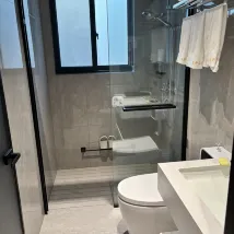 This guesthouse, which only opened in 2025, has relatively new facilities. It's very close to the North High-Speed Railway Station, about a 10-minute walk. The glass is very soundproof, and the curtains block out light well, although the light coming through from the bathroom is quite strong. I stayed on the first floor, which was fairly quiet. Breakfast is not included. There are no restaurants in the entire guesthouse village; you have to go to the North High-Speed Railway Station for meals. The guesthouse owner can provide à la carte options.