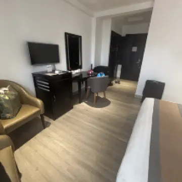 This hotel and lovely with spacious rooms. The room and bathroom were spotless. The staff were lovely and the pool clean (sadly rainy weather). The breakfast was extensive with many options. The location is central to many restaurants and cafes.