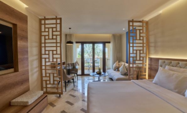 The hotel's public areas are very large, with a swimming pool, beach, golf course, diving, surfing, table tennis, billiards, spa, and more. It has everything you could want; it felt like we could stay for a long time.
