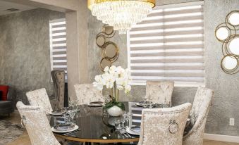 Discover the beauty of Coachella's six-bedroom getaway, offering excitement and tranquility. Nestled just a 27-minute drive from the breathtaking Joshua Tree National Park and a 10-minute drive from the renowned Empire Polo Club, this property offers a prime location for exploring the area's top attractions.
