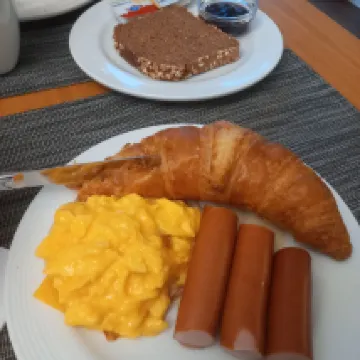 The owner was very welcoming and provided a detailed introduction to the hotel's facilities. There's also a complimentary coffee machine in the lobby. While the coffee itself was just average, it certainly showed the hotel's thoughtfulness. Breakfast didn't offer a vast selection, which seems to be common in Swiss hotels. However, with items like bread, eggs, various cheeses, cold cuts, and fruit, we could still enjoy a satisfying meal.