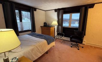 It was a last minute hotel stay on our trip. Rate was great for summer time stay. Had a nice game room, bikes and kayaks for us to use if we wanted to. Big living room area ( what I would call it) with TV, a kitchen area to use to make your own food. A fire pit, all s'more stuff in a cabinet to use as well. Lake down the hill to go fishing or kayaking. In the winter, big ski slope. Nice deck that goes along the back side with plenty of seating and great view. Met the owner when we were getting ready to leave. Very nice and talked to him for a while. Would go back if in the area and stay a couple days! Nice and quiet! The outside looks like something you would see in Switzerland area.