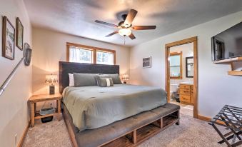 In some of the best snow of Island Park lies a charming four-bedroom cabin, ideal for your upcoming winter getaway. As you step inside, you'll be greeted by a warm and inviting atmosphere, complete with an electric fireplace and smart TVs for your entertainment.