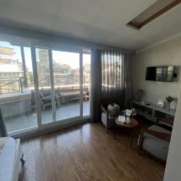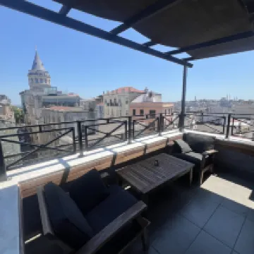 We stayed in an apartment on the 6th floor with a terrace with a great view. The apartment has a small kitchen with a microwave and stove, a huge and comfortable bed. And most importantly, a terrace with a view of the Golden Horn, the old city and of course the Galata Tower. A great place for breakfast and dinner, or just to sit. One wish, make a permanent roof over the terrace, otherwise during the rain the canopy gets wet and water floods. In the end, I recommend this room.