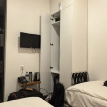 The room was quite clean, just a bit small. Given its proximity to a tourist attraction, the price was pretty reasonable. The front desk guy was really enthusiastic! He helped us with our luggage and gave us directions.