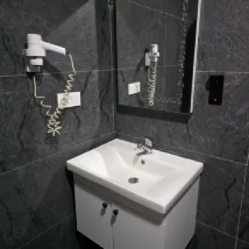 Convenient and cheap for stay near IST Airport. Deluxe room was quite spacious so is the shower room. Shower was good with warm water available. There is a jug kettle with 2 tea bags, 5 pieces of sugar and 2 small bottles of drinking water. 2 cups with no spoon. 2 mosques 250-300m nearby and quite a number of eating places and restaurants. Bus H-6 available every half hour to/from Airport TL54 using Istanbulkart