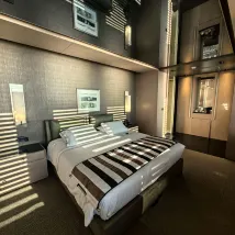 This hotel, formerly a bank, boasts a retro-futuristic décor, from the lobby to the rooms. The rooms are tastefully decorated, with electric blinds offering views of the sea, and beautiful details. The minibar is free and has a wide selection.