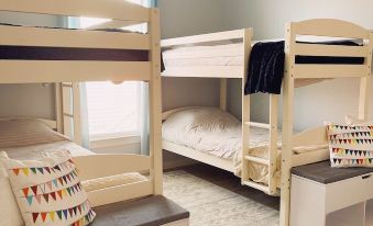 3 bedrooms: 2 bunk beds 1 queen bed and 1 king bed