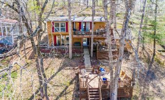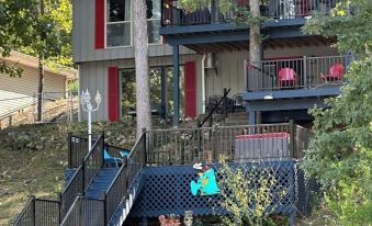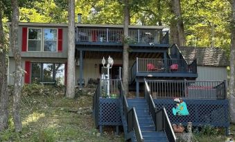 A home with all the Lake charm and awesome location is right at your fingertips! This home sits in a quiet, calm water cove on the 10 mile marker and is just around the corner from Franky & Louie's Beach Front Bar & Grill. Galley-style kitchen and open living space with updated wood floors and paint. Two bedrooms and 1 full bath on the main level and 2 additional guest bedrooms and 1 full bath on the lower . A large family room downstairs adds more entertaining space for all your friends and family plus features a wood-burning stove for those chilly lake nights. Two levels of deck space and a fantastic lakeside martini deck are perfect for enjoying the lake life. The dock is a 2 well dock with 1 well being filled in with decking for extra entraining space.About pets:Pets allowed: dogs less than 50 lbs per pet (limit 2 pets total).About checkOut:Check out before 10:00 AM.About children:Children allowed: ages 0-17.About customRules:Clary Lane is a private street and our home sits at the end of the road. Please be considerate of the neighbors and do not knock looking for address..Our cove is a NO WAKE cove. If you have a boat or PWC, do not go above IDLE SPEED or you will be ticketed by MHP who patrols our cove..About checkIn:Check in after 4:00 PM.About smoking:Smoking is not permitted.About minBookingAge:Minimum age to rent: 21.About events:Events allowed: family gatherings and birthday parties.Maximum event attendees: 12.