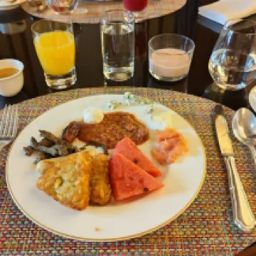 The service exceeded expectations in some areas but fell short in others. What exceeded expectations: Room change request and check out flexibility met. What fell short: Upon room change, there were no slippers provided. A request for breakfast box for one morning (my rate included breakfast) was not followed through, neither an ok nor a no was given. Waiters on final day breakfast were slower than usual to serve coffee and tea.