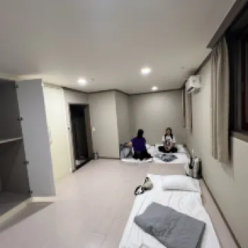 The location is decent, right in the city center. Jeju City isn't very big, so you can walk anywhere. The room itself is small and simple, but it has everything you need and is quite clean. There's underfloor heating, which keeps it very warm in winter.